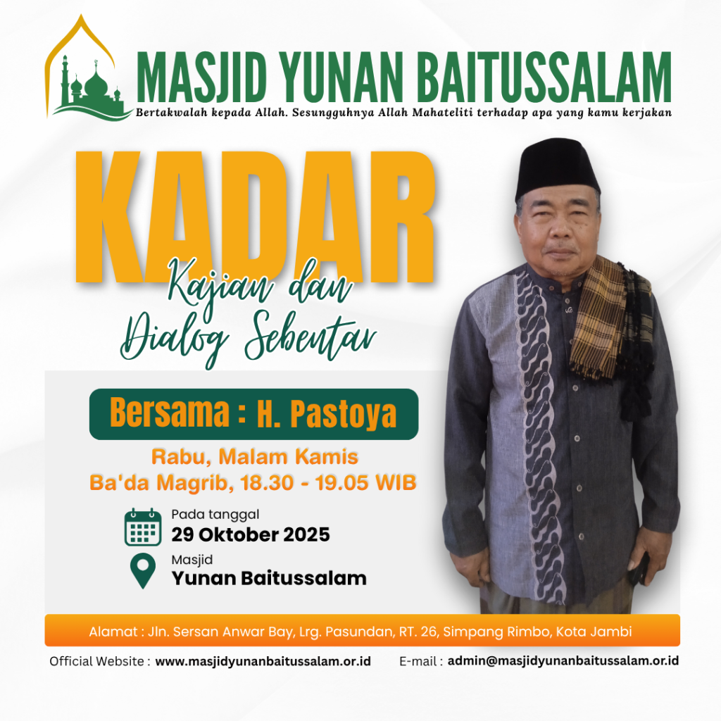 Kajian dan Dialog Sebentar (KADAR) Rabu, Malam Kamis, Ba’da Magrib, 22 Oktober 2025.